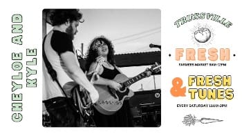 Head over to the Trussville Farmers Market at the Entertainment District and enjoy live music from Cheyloe & Kyle! You can relax under the pavilion and enjoy some delicious food and drink after shopping at the market. The music kicks off at 11am! Don’t miss out!