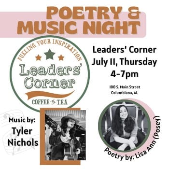 Join local author and poet Lisa Posey to celebrate her new book release at Leaders’ Corner Coffee & Tea! You can enjoy music from Tyler Nichols Music and sip on some great coffee or some tea. Her new book of poetry is called “The Evolution of a Teen Girl” and delves into the highs and lows of a teen girl navigating relationships and finding her identity.