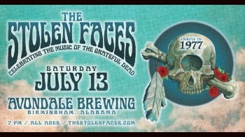 The Stolen Faces will be celebrating the Grateful Dead's song of 1977 at Avondale Brewing Co this Saturday! It’s an all-ages show, so the entire family can enjoy the experience. The Stolen Faces deftly capture the spirit of the Dead, covering the band’s expansive catalog and delivering it with the sort of energy and spontaneity that might have you thinking you’re standing in the Winterland Ballroom in 1973! Put on some tie dye and head over to Avondale!