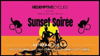 Grab a bike and come ride and explore our city! Redemptive will be riding out close to dark so make sure you have your lights and maybe even add a few extra! All types of bikes and riders are welcome. You don't have to compete to be fastest to have a good time and you could even still win something cool. $15 registration fee with all proceeds going towards Redemptive Cycles charitable services. The ride rolls promptly at 7pm but come early to register and for any last minute needed items. Alley Cats have no set route. Instead, all riders must visit designated checkpoints and gather proof of their visit. They’ll give you the checkpoints at registration then you plan your own route! Ride alone or with friends but the important thing is that you ride!
