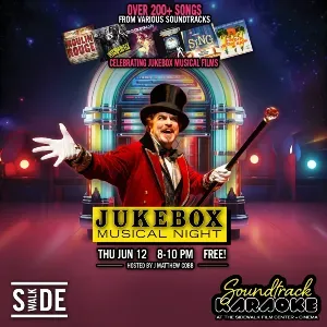 For the month of June, Soundtrack Karaoke will be celebrating the power of jukebox musicals on the big screen. Enjoy this one night affair of singalong hit-parade theatre. With over 200+ songs to choose from, including selections from Moulin Rouge!, Purple Rain, Rock of Ages, Pitch Perfect, Trolls, Rocketman, Singing in the Rain, Mamma Mia, Saturday Night Fever and many more. Hosted by J Matthew Cobb.