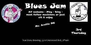 Don’t miss the 3rd Thursday Blues Jam at True Story Brewing! This is an open jam session, so bring your instruments and get ready to hear some great blues music while sipping on a brew. The event kicks off at 7:30pm.