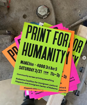 Print for Humanity is back, this Saturday 11am - 3pm! Bring your own cotton shirt blank, the prints are free but please make a donation to our friends at ACIJ or HICA! They will also have some preprinted special edition shirts that you can get directly from them! The line got REALLY LONG last time. Come ready to make friends with those around you & keep in mind they can only go as fast as the dryer lets us. Come hang out, print a shirt, and print some signs for next Saturday’s No Kings Rally at Railroad Park! Cenaduria Morelia will be on site at MAKEbham serving up some delicious food for purchase!