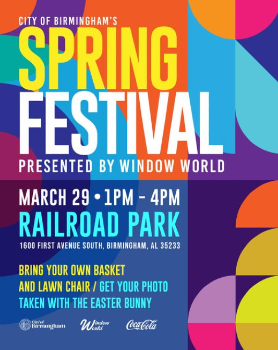 Mayor Randall Woodfin invites everyone to the City of Birmingham Spring Festival on Sunday, March 29th, from 1:00 p.m. to 4:00 p.m. at Railroad Park. This free, family-friendly event will feature food trucks, music, activities, and a special visit from the Easter Bunny.