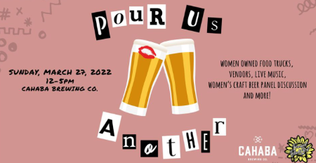 Pour Us Another: Celebrating Womxn and Craft Beer' is a FREE event focused on making craft beer more welcoming to all womxn. Cahaba has partnered with Ashley Monroe (Brewed Black Girl) to create an event that's all womxn everything with womxn-owned food trucks, vendors, live music, and more! WOMXN OF CRAFT BEER PANEL (1 PM - 2 PM) Moderated by Melissa Ralph, DMSC this panel features an eclectic mix of womxn, offering different takes on Birmingham's craft beer scene. Check out multiple vendors, bands, and food trucks! Don't miss out!