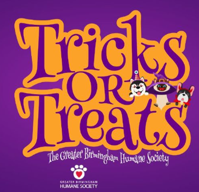 Don’t miss a spooktacular good time at the Greater Birmingham Humane Society's 2nd Annual Tricks or Treats event! Spooky tour guides will lead small groups of trick 'r treaters on a hauntedly fun tour of the adoption floor on Snow Drive. A donation of pet food for the GBHS Pet Pantry will be required for entry. This event is just for humans, however there will be shelter pets in attendance to scare up a good time!