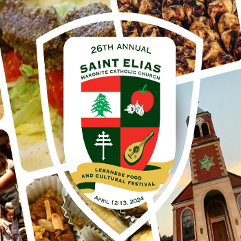 St. Elias Maronite Catholic Church will celebrate its 26th Annual Lebanese Food and Cultural Festival from 10:00 AM to 9:00 PM, Friday and Saturday! Admission is FREE! Come try homemade Lebanese food for lunch, dinner, or dessert; watch traditional Lebanese dancing demonstrations; bid on a premium item at the Silent Auction; participate in an informative Church tour; and dabke to a live Lebanese band!