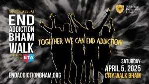 Come walk to honor those we've lost, celebrate those in recovery, and offer hope to those still struggling. Every step we take helps raise awareness about the substance use crisis affecting our community. TOGETHER WE CAN help save lives and build a stronger, healthier future for Birmingham and the state of Alabama. The END ADDICTION BHAM Walk presented by ETA is a FREE event hosted by the Addiction Prevention Coalition. This 9th annual event raises awareness and funds to help combat the addiction epidemic in Alabama. It’s FREE to attend and walk and $35 if you’d like to register and get a t-shirt.