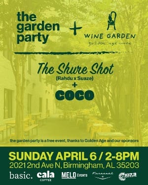 The Garden Party blooms anew on Sunday, April 6, at its new home downtown at Golden Age Wine Garden! Join in from 2-8pm as DJ Coco is joined by DJ Rahdu and Suaze of The Sure Shot DJs for an all-vinyl season opener of grooves and tunes to jazz up your spring Sunday. It’s time to soak in some sunlight and move together. This is a free event for the community thanks to our sponsors, so come enjoy a beverage and a bite in the garden.