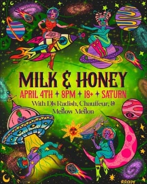 Milk and Honey will journey to the far-out reaches of space and beyond on Friday, April 4, as they go SUPERNOVA! Voyage through the stars as DJs Radish, Mellow Mellon, and an extraterrestrial visitor from Denver, Chauffeur, bring the beats to Saturn! Prepare for a stage invasion as our special guest performer, Priscilla Vanilla, teleports us to Mars, teletubby! The lqqk is Silver Surfer, Andromedon Androgyny, Mace Win-SheBetter-Du, Nebula & Gamora, Battlestar Gaylactica. This event is always filled with fun outfits and plenty of over the top surprises!