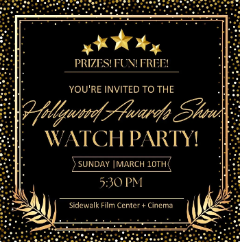 Join the Sidewalk crew to celebrate Hollywood's most celebrated evening with a FREE watch party including a live stream of the awards ceremony on the big cinema screen AND all three screens in the lobby bar. They'll get started at 5:30pm with the red carpet broadcast followed by the awards ceremony at 6:00pm. As usual, there will be ballots for voting predictions, a lot of prizes and some surprises! This is a free event. Reservations are strongly recommended but not required. Seating is first come, first served*