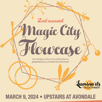 Luminarts Entertainment is excited to present The 2nd Annual Magic City Flowcase – a flow arts based showcase. Their mission is to inspire flow arts hobbyists and performers alike to submit their original work and bring awareness of flow arts to a larger audience. This all ages show features acts with props like hula hoops, poi, dragon staff and more!Click here for more info.