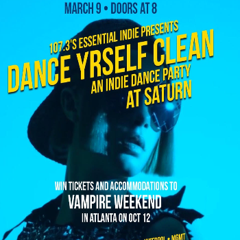 Saturday, March 9th! 107.3's Essential Indie is coming to Saturn and they want you to Dance Yourself Clean! Playing all your favs from the 2000s, they've got the tunes that will get you moving for this dance party. Doors Open at 8pm! Tickets available NOW at saturnbirmingham.com Come out for a chance to win tickets to see Vampire Weekend in Atlanta with a paid hotel stay!
