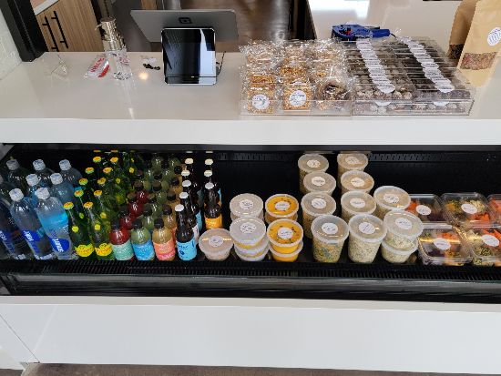 You can also order ahead of time, come in the back door, grab your order and go without waiting! The third option is a walk up counter where you can get some grab-and-go drinks and snacks! The snack bar features items from both Better Kombucha Birmingham and Harvest Roots ! All of this is designed to help you get in and out on your lunch break and to allow you to spend more time savoring your food than waiting on it.
