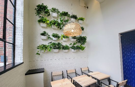 Amber and I recently checked out the new location just before it opened for their “Friends & Family” preview. We were blown away at how light and welcoming the space has become! BLUEROOT has such a clean and airy aesthetic with a ton of natural light. One of the first things we noticed was an insanely high plant wall that was done in collaboration with Botanica.