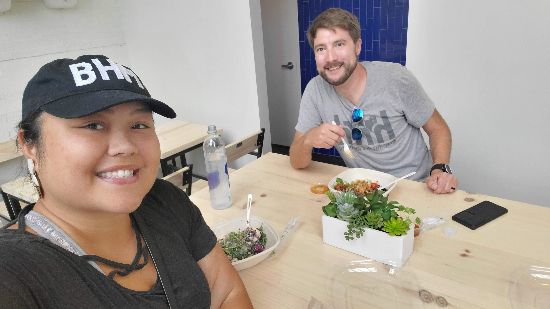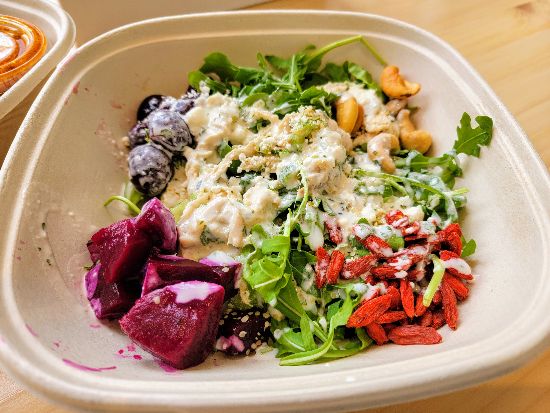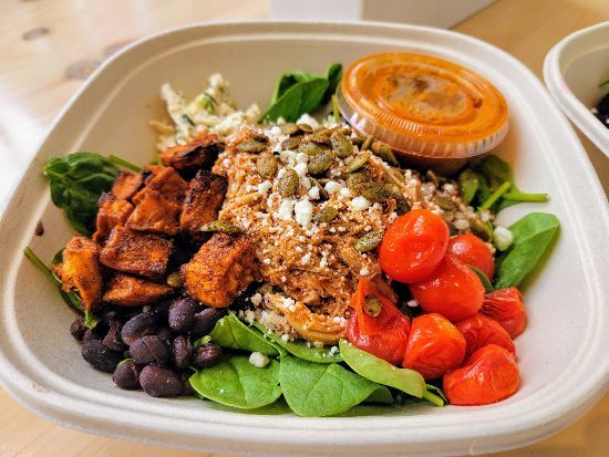 Jennifer has now expanded the menu at the new location to include even more healthy options that will have you discovering new flavor combinations with every bite! They still have favorites like their Rice Crispy Treats and Dark Chocolate Tahini Brownies, while also adding salmon to the menu as well as a chicken salad made with greek yogurt in place of mayo. We had the Santa Fe Bowl & Super Food Bowl. Both were incredible! BLUEROOT uses bread from local favorite, Bandit Patisserie! They are served in compostable containers that are perfect for dining in or take out. Even the utensils are compostable! BLUEROOT also partnered with FeedBHM to make sure that food that doesn’t get sold goes to help end hunger and prevent food waste!