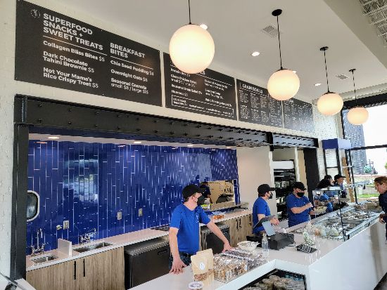 BLUEROOT has been set up so that you have three different options of ordering. The first is walking through the line and ordering your food or building your own bowl to take with you, dine inside, or enjoy the patio seating.
