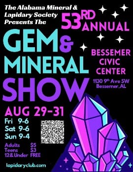 Join in for the 53rd Annual Gem & Mineral Show, hosted by the Alabama Mineral and Lapidary Society, at the Bessemer Civic Center on August 29 through August 31. As always, this event is chock full of vendors with the most amazing gems, minerals, crystals, fossils, handmade jewelry, and more! It’s a family friendly event with fun activities for all ages, including a kids area and geode cracking. Step in out of the heat and check out some cool minerals to round out your summer fun! We can definitely say that this event ROCKS!