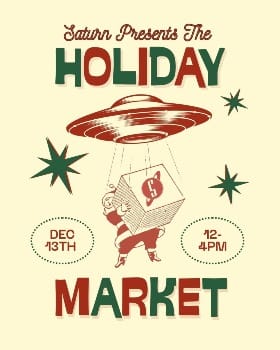 The Saturn Holiday Market returns this Saturday! One of our venues will be packed with local vendors who’ll have something for everyone! From hand crafted goods, to amazing vintage clothing and memorabilia, come grab a gift for the special people in your life (or even better, yourself)! Also, don’t forget that Saturn has a limited number of 2026 Annual Passes that will get you and a guest into EVERY show and every event, even if they’re sold out! You can purchase them in the Satellite Bar during normal business hours. We’ve already got ours for 2026!