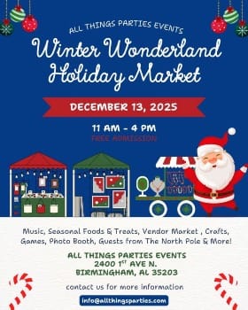 Kick off the season with cheer at Birmingham District Brewing Company’s Holiday Market! Join in for a cozy day of shopping, sipping, and celebrating with local vendors offering a festive mix of holiday décor, handmade jewelry, original art, delicious treats, unique gifts, and more. Grab a pint of your favorite brew, browse one-of-a-kind finds from Birmingham’s best makers, and enjoy the warm, community spirit that makes the holidays so special. Whether you’re checking off your gift list or just getting into the festive mood, this market has something for everyone!