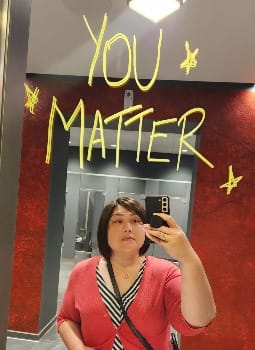 More importantly, during intermission, we noticed that they had written positive messages like “Find Each Other!,” and “You Matter!” on the bathroom mirrors. These statements are accompanied by QR code and contact information for a few community health partners like the Crisis Center and UAB Counseling Services. Given the subject matter of the musical, these small touches show that art isn't just for entertainment. Sometimes it can save lives.