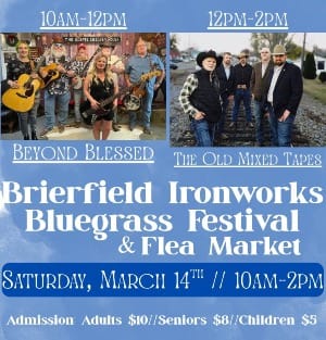 Bluegrass is returning to Brierfield! Enjoy live bluegrass music from local favorites Beyond Blessed and The Old Mixed Tapes, plus treasure hunting with our Flea Market vendors! You can also grab a bite to eat with Stephen’s Hot Dog Wagon or Corn King, two of the best food trucks around! There will be a special event admission fee to help us cover the cost of the bands.