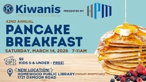Don’t miss the 42nd annual Kiwanis Club of Homewood-Mountain Brook Pancake Breakfast, a Kiwanis fundraiser open to the Greater Birmingham community! All you can eat pancakes, sausage, coffee and other beverages. Tickets are $8.00 and children 5 and under eat free. Tickets available at the door. Proceeds benefit the Homewood-Mountain Brook Kiwanis Club service projects focused on serving children throughout the greater Birmingham area.