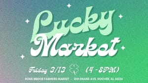 A little luck, a lot of charm! The Lucky Market is bringing St. Paddy’s spirit to Ross Bridge on Friday from 4-8PM. Curated local vendors, festive bites, and a whole lot of green! It’s going to be a great time!
