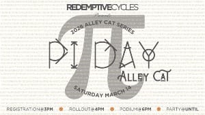Grab a bike and come ride and explore our city while celebrating Pi Day on 3.14! All types of bikes and riders are welcome. You don't have to compete to be fastest to have a good time and you could even still win something cool. $15 registration fee with all proceeds going towards Redemptive Cycles charitable services. Registration opens at 3 PM. Ride rolls promptly at 4 PM but come early to register and for any last minute needed items. Alley Cats have no set route. Instead, all riders must visit designated check-points and gather proof of their visit. You’ll get a list of the check points at registration then you plan your own route! Ride alone or with friends but the important thing is that you ride!