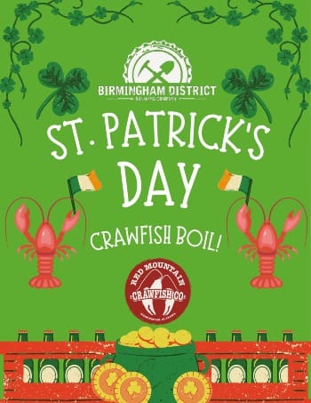Get ready to shamrock & roll! Head over to Birmingham District Brewing on Saturday, March 14th for a St. Patrick’s Day Crawfish Boil you won’t want to miss! They’re teaming up with Red Mountain Crawfish to serve up piles of perfectly seasoned, hot, and ready-to-peel crawfish. Grab a tray, grab a beer, and settle in for an afternoon of good food, great company, and festive vibes. And of course, their Irish Stout will be pouring all day long. It’s rich, creamy, and smooth with subtle roast and chocolate notes. It’s the perfect pint to pair with a little spice and a lot of fun. Bring your friends, wear your green, and celebrate St. Paddy’s the Birmingham way!