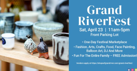 Get Ready for the Grand RiverFest! the one-day marketplace is on Saturday, April 23rd, from 11 am – 5 pm at The Outlet Shops of Grand River. Come to shop and stay to play! There’ll be arts and crafts, tickets for all-you-can-eat crawfish, live music, and family fun! Enjoy Face painting, bounce houses, Mr. Twister balloons, Golden Retriever Dog adoption, contests, and more! This will make for a perfect family outing!