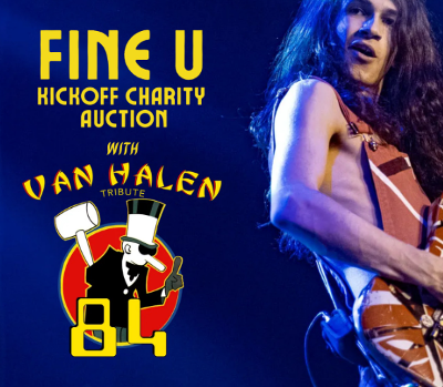 Join in for a FINEUs Kickoff Charity Auction. The event will be held from 6pm-9pm with live music from 84 - A Van Halen Tribute. $10 Suggested Donation The Auction starts at 6pm, with live music kicking off at 7pm. The Fine U Foundation was founded by Kaitlyn Hughes. Kaitlyn wanted to help the special needs community due to the friendships she has made through work with different special needs organizations. This community has impacted her life in incredible ways, so the Fine U Foundation plans to serve and give back to them.