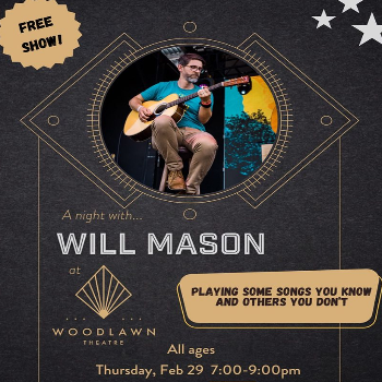 Will Mason (Owner of Woodlawn Theatre) will play some songs you know and some you don’t! This is a free event and all ages are welcome. Rumor is Will has been working up a set of piano covers from the 90s too, so all you Ben Folds fans come on out! Happy Hour will be happening from 4-7pm before the show! This is a great opportunity to check out this incredible venue!