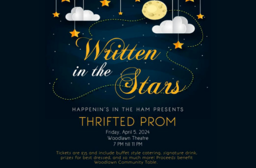 Oh, and a BIG ANNOUNCEMENT! Happenin’s in the Ham is hosting a Thrifted Prom at Woodlawn Theatre! The theme is “Written in the Stars,” and we are encouraging all attendees to wear thrifted formal wear from a locally owned thrift/consignment shop! The proceeds from the event will go to the Woodlawn Community Table 501c3 to help the Woodlawn community!