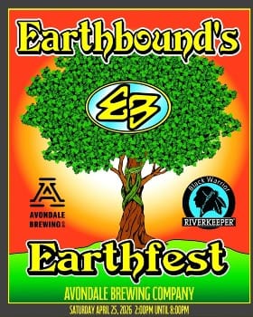 On Saturday, April 25, 2026, Earthbound will play their highly-anticipated annual outdoor concert, Earthbound’s Earthfest, at Avondale Brewing Company! Open to all ages (under 21 must be accompanied by a parent or guardian), this family-friendly event’s purpose is to raise awareness for Earth Day and raise funds for Black Warrior Riverkeeper. Throughout the event, Earthbound will play several sets, joined by speeches from Black Warrior Riverkeeper and exhibits from local artists and charities. Optional donations from the audience and merchandise sales will support Black Warrior Riverkeeper’s efforts to protect local waterways and drinking water sources.