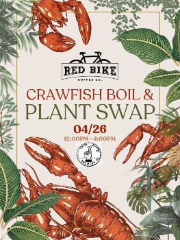 Come and enjoy a fun plant swap while eating delicious crawfish! Head over to True Story Brewing/Red Bike Coffee to find that perfect plant! Crawfish will be available for purchase while they last! This is a great way to wind down your weekend!