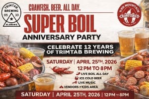 TrimTab is turning 12 and celebrating with crawfish and cold brews! Come and purchase some crawfish from Red Mountain Crawfish as you listen to some great music and shop some local vendors! There will even be cornhole and a kid’s zone! They’ll be serving crawfish until they run out!