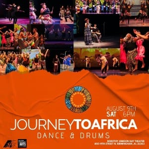 Journey to Africa, "Dance & Drums" BIRMINGHAM & SURROUNDING AREAS! GET YOUR TICKETS TO AN ALL NEW JOURNEY. The journey features 8 locally choreographed pieces, spoken words, and live drumming expressing African influences on the culture. This will be a riveting performance you won’t soon forget! Don’t miss out on this cultural event!