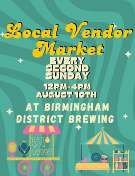 Join Bham District Brewing for the third installment of the Second Sunday Summers Makers Market on Sunday! Celebrate local creativity with an afternoon of shopping, sipping, and sunshine! Browse a curated selection of goods from local makers and artists, from handmade jewelry and home goods, to unique art and gifts, there’s something for everyone. While you shop, grab a bite from Roll Cajun Food Truck, serving up bold Southern flavors to pair with your favorite craft brews. Support local, sip local, and spend your Sunday at District Brewing!