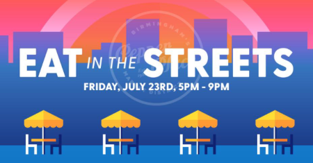 Another Eat in the Streets! This one is hosted by the City of Birmingham as part of the ongoing 150th Anniversary Celebration! Participating restaurants include: ZaZa, Paramount, Chocolata, Café DuPont, Helen, Bistro 218, Brick & Tin, and Elyton Hotel’s Moonshine and The Yard! Come enjoy live music and delicious food Friday night and all day Saturday!