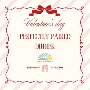 Join in for an unforgettable evening of perfectly paired food and beer, crafted by the amazing Chef Russ Bodner and Head Brewer James Vance. Start with a delightful amuse, followed by multiple thoughtfully curated courses paired with a mix of bubbles and Back Forty’s signature brews. This is a great way to celebrate Valentine’s Day in style! Please note: The menu is subject to change based on availability.