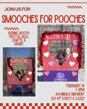 Don’t miss Smooches for Pooches Saturday, February 14th at Avondale Brewing Company from 1-3PM! Underdog Rescue will have adoptable dogs, photo-ops with the kissing booth, fun Valentine’s crafts, & more! This Valentine’s event is perfect for your four legged loves!