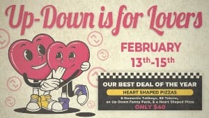 Quit playing games with someone’s heart and play games at Up-Down instead! Skip the boring restaurant and bring your Valentine to Up-Down. From February 13th through the 15th, enjoy a Valentine’s Day special for $40, which includes 6 domestic tallboys, 80 tokens, an Up-Down fanny pack, and a heart-shaped pizza! No reservations needed. Nothing beats actually having fun with your partner, so play some games, grab a drink, and make it a night worth remembering.