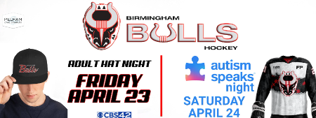 Cheer on the Birmingham Bulls as they take on the Knoxville Ice Bears this Friday night! These games always make for a great night out with friends! It’s gonna get rowdy, so prepare to get loud! Kick of your weekend right and support our local hockey team!