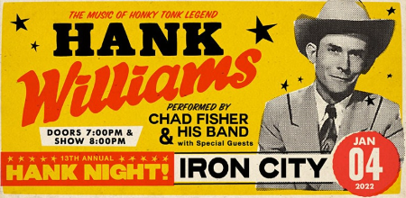 This event was rescheduled last month, but is happening this week! Iron City is celebrating the legendary Hank Williams Chad Fisher & His Band will be playing Hank Williams songs throughout the night. Iron City is the perfect venue for some honky tonk fun! Tickets start out at just $17.