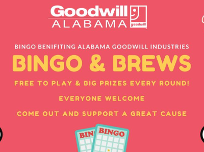 It’s time for B-I-N-G-O! Join in the fun at the Taproom at Cahaba Brewing for bingo and brews benefiting Alabama Goodwill. Free to play and great prizes each round! Alabama Goodwill’s mission is to help people in our community prepare for, find and keep jobs. Make sure to swing by Cahaba Brewing on July 28 to support this great organization. A portion of Taproom sales will be donated to Alabama Goodwill.