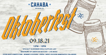 It's time for the Cahaba Brewing annual Oktoberfest! Join in the fun at the Taproom for excellent craft beer, great food, cocktails, and good times as you celebrate the release of the seasonal Oktoberfest canned beer. They’ll also have bratwurst from American Butcher, live music, a stein-hoisting competition, and more!