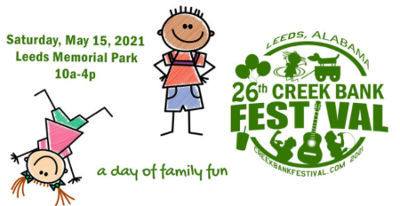 Each year, the Creek Bank Festival is held in May hosted by the Leeds Area Chamber of Commerce at the Leeds Memorial Park. Plan to bring your entire family and join in for plenty of food, fun, entertainment and fellowship! This will be a full day of festivities planned with plenty of shopping at arts and craft booths, great entertainment on the main stage, and food vendors! The lineup includes Nashville Recording Artist Michael Jacobs, Birmingham-Based Singer/Songwriter Erica Ryleigh, Singer/Songwriter Miss Leeds Area Charity Bowden, and The WingNuts - Vintage Rock 'n Roll! Get ready to get outdoors and have a great time!